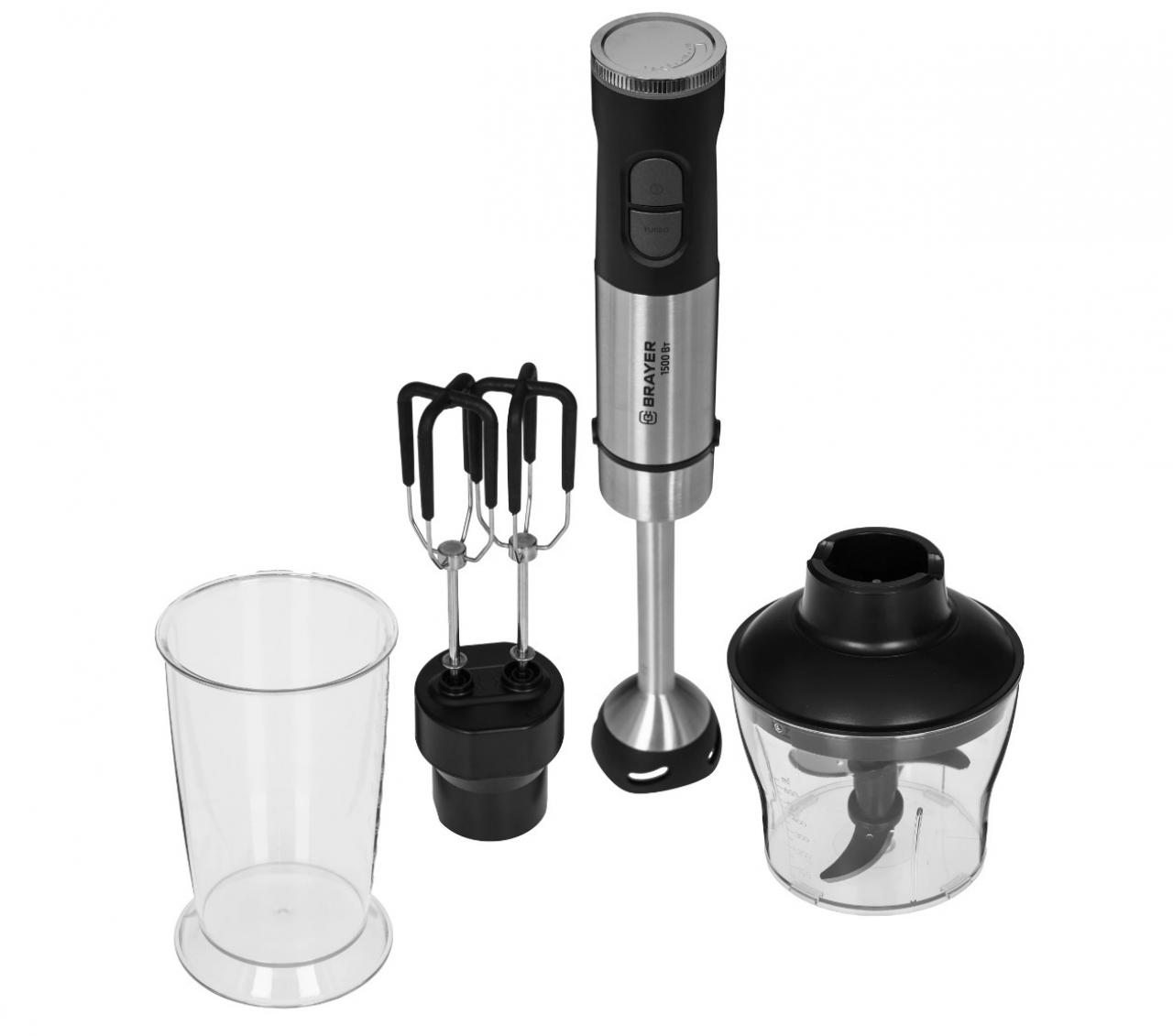 - Комплектациядокументация, измельчитель, мерный стакан, насадка-блендер, насадка-миксер, универсальный нож