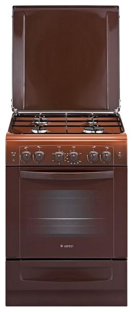 газовая варочная поверхность (эмаль), духовка газовая обычная, газ-контроль духовки, электроподжиг, размеры (ШхГхВ): 60x60x85 см, цвет: коричневый.