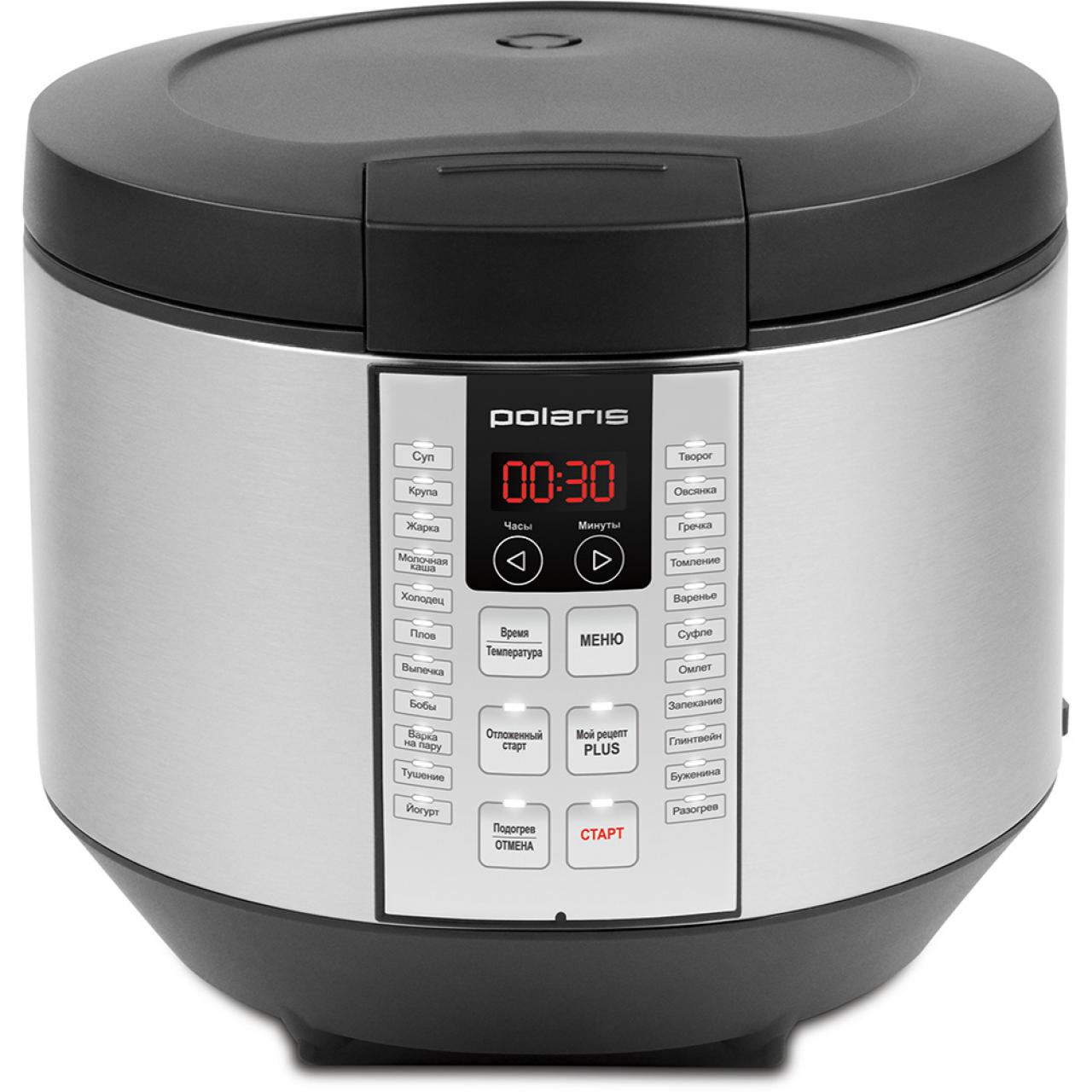 Режимы работы: Мой рецепт Plus, Суп, Крупа, Жарка, Молочная каша, Холодец, Плов, Выпечка, Бобы, Варка на пару, Тушение, Йогурт, Творог, Овсянка, Гречка, Томление, Варенье, Суфле, Омлет, Запекание, Глинтвейн, Буженина, Разогрев.